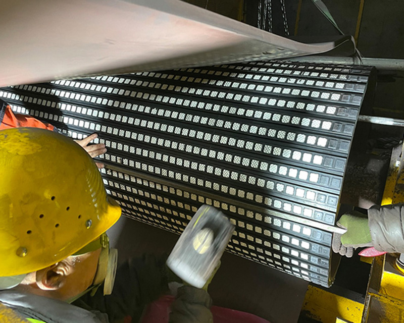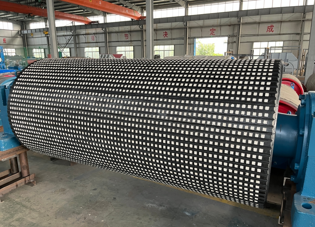 ■ 采用表面顆粒狀高耐磨性能的陶瓷塊嵌入橡膠及特殊的橡膠結(jié)構(gòu),使其與皮帶間的摩擦系數(shù)增加,防止皮帶打滑;