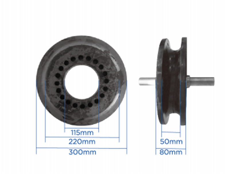 通過正確安裝防跑偏輪,可以有效的預(yù)防和糾正膠帶跑偏情況。 ■ 百瑞福糾偏輪采用德國工藝技術(shù),防跑偏輪GW300/80能夠被用于所有帶橫向加強(qiáng)層結(jié)構(gòu)的膠帶; ■ 傳統(tǒng)金屬立棍式糾偏易損傷擋邊帶基帶,GW300 圓盤面為高含量天然橡膠,可對(duì)膠帶柔性糾偏; ■ GW300 軸承采用特殊緩沖設(shè)計(jì),使用壽命長(zhǎng)久。 | |